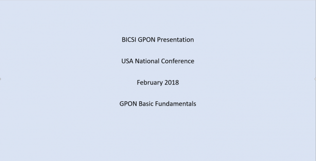 BICSI, GPON Basic Fundamentals. TechnicalBy Victor HoltersSeptember 8, 2021GPON Cabling Presentation at BICSI USA Fall Conference, 2018.